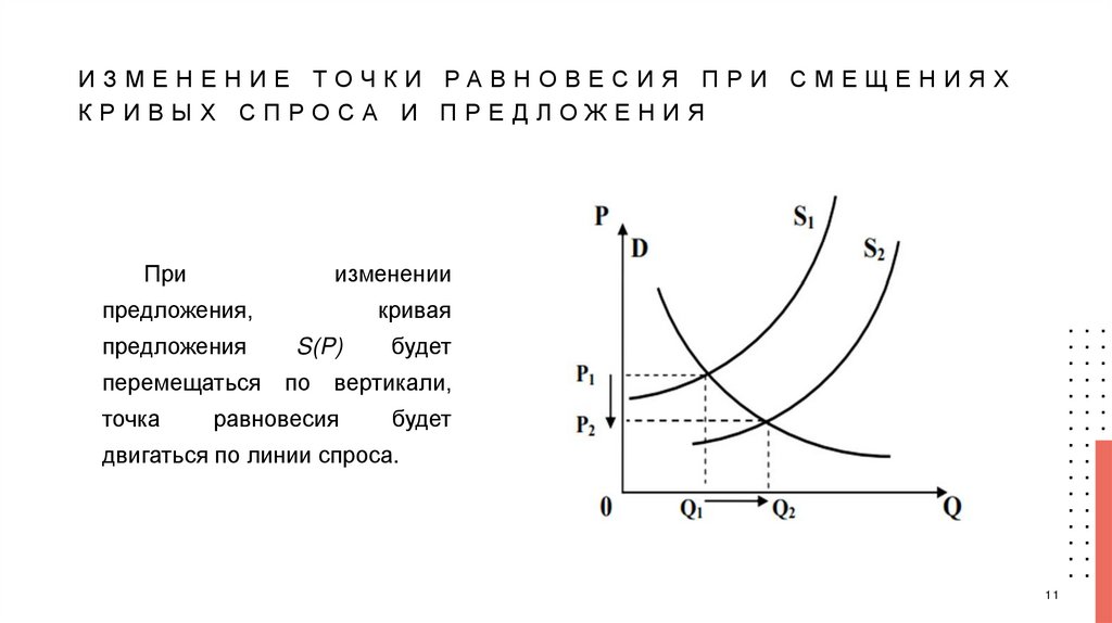 11. Изменение точки равновесия при смещениях кривых спроса и предложения
