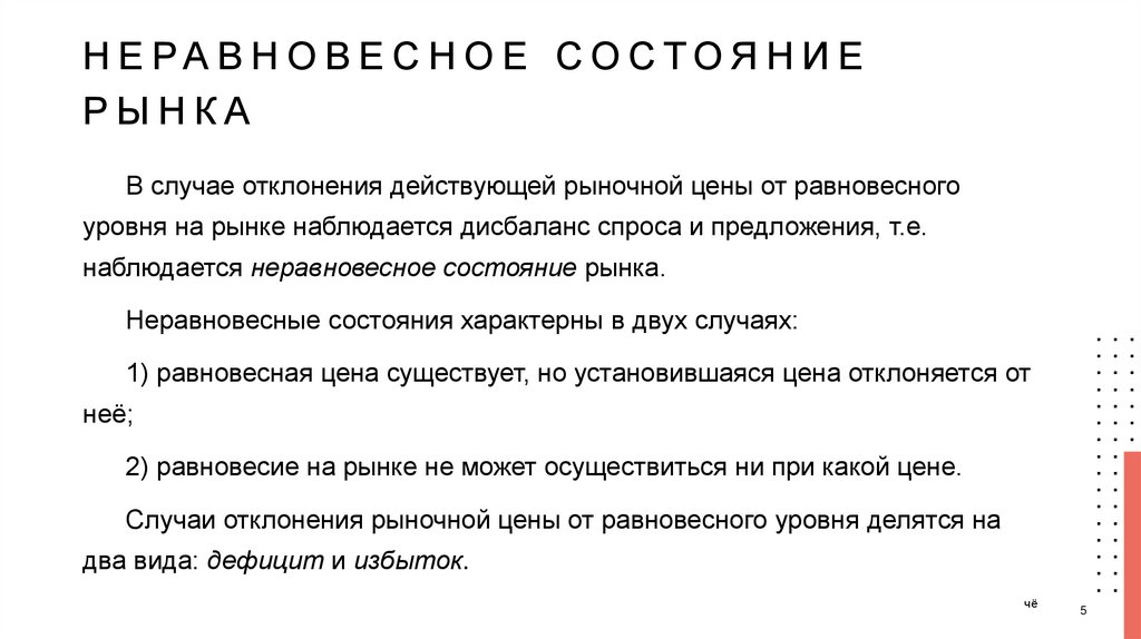 Равновесная цена и равновесныйобъем. Неравновесные состояния