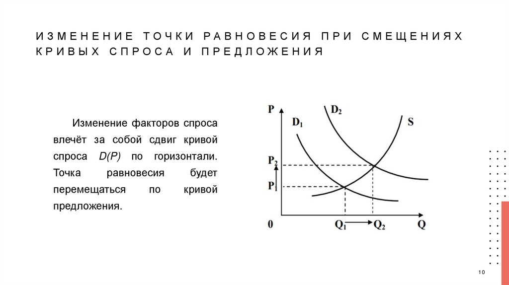 10. Изменение точки равновесия при смещениях кривых спроса и предложения