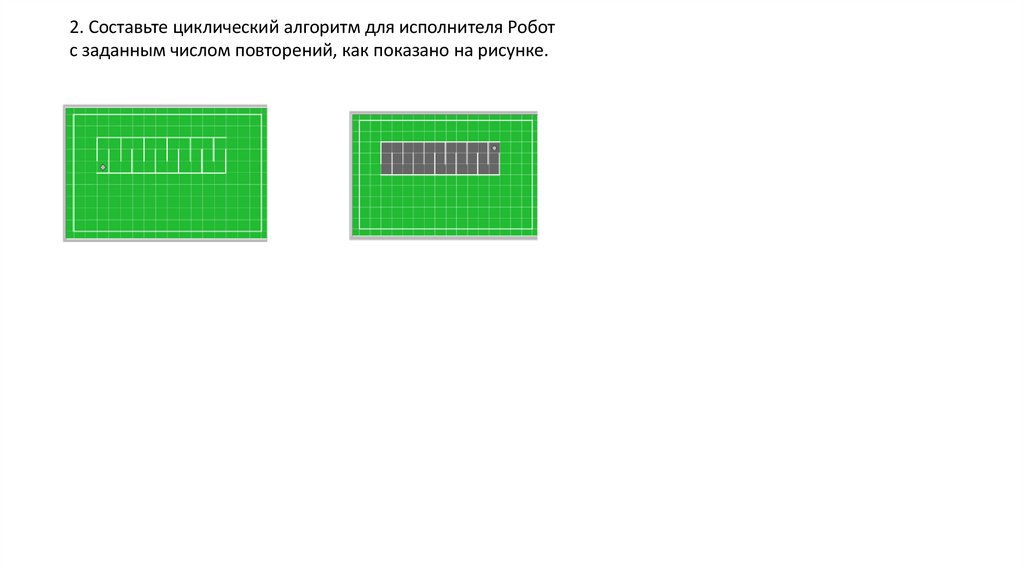 2. Составьте циклический алгоритм для исполнителя Роботс заданным числом повторений, как показано на рисунке.