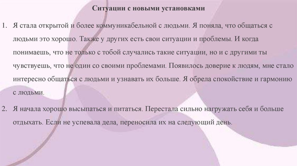 негативные установки, я больше познакомилась с собой и расширила своё мировоззрение.