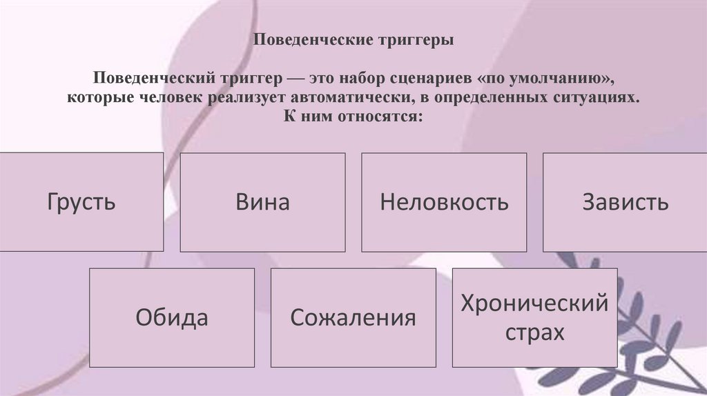 5. Поведенческие триггеры Поведенческий триггер — это набор сценариев «по умолчанию», которые человек реализует автоматически, в