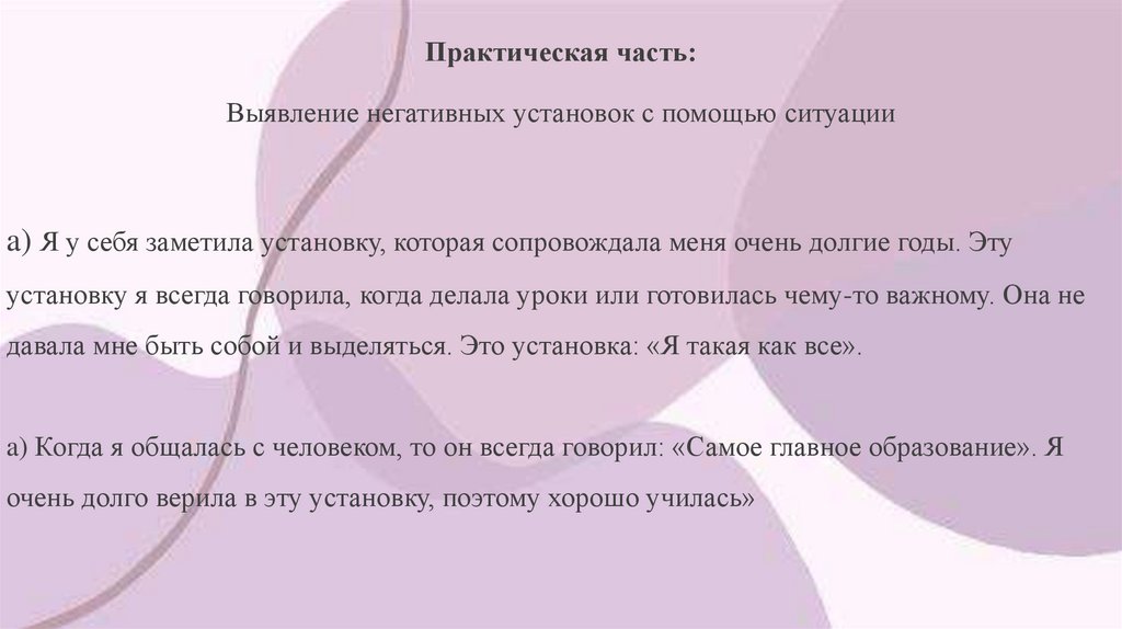 7. Практическая часть: Выявление негативных установок с помощью ситуации
