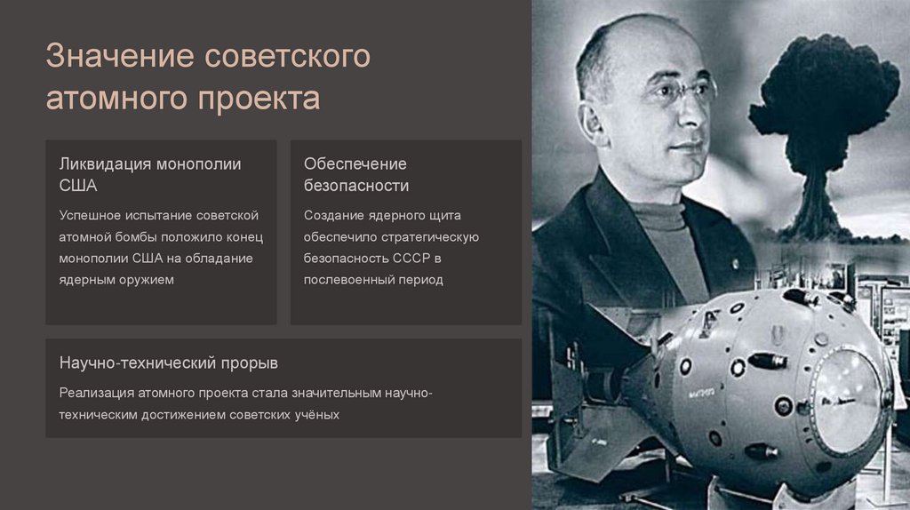 Реализация атомного проекта стала значительным научнотехническим достижением советских учёных