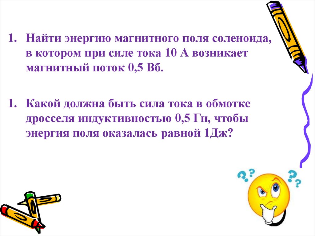 1. Найти энергию магнитного поля соленоида,в котором при силе тока 10 А возникает