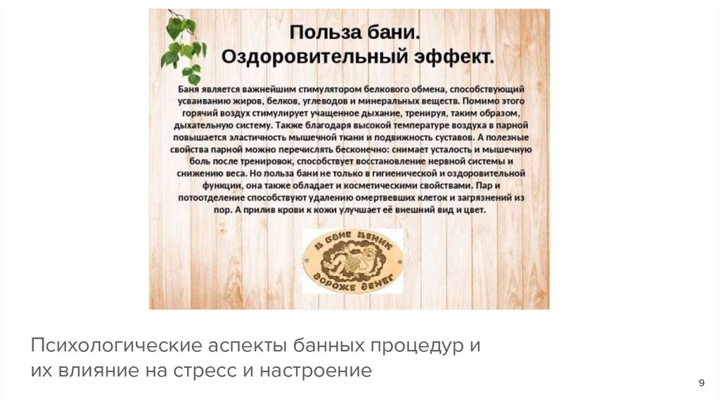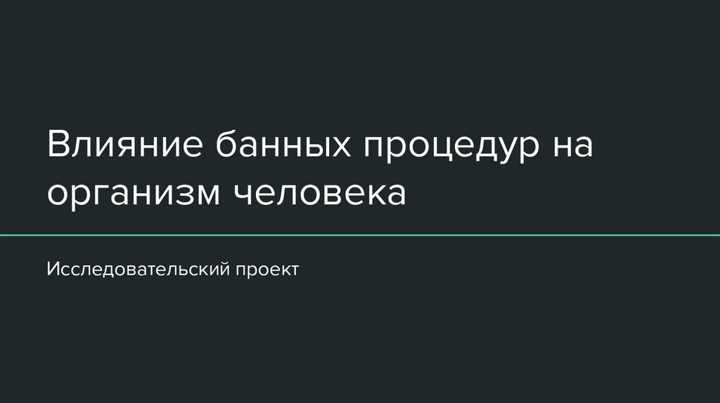 ЦельИсследовать влияние банных процедур на здоровье и состояние организма человека.