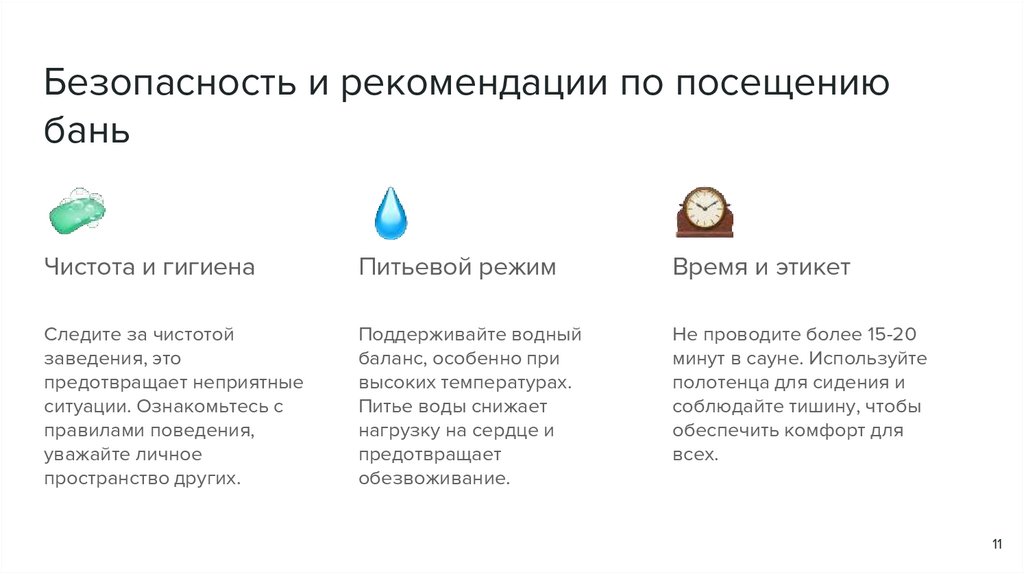 отрицательные эффекты банных процедур; 3. Составить рекомендации по безопасному посещению