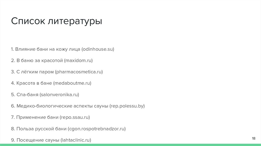 Список литературы1. Влияние бани на кожу лица (odinhouse.su)