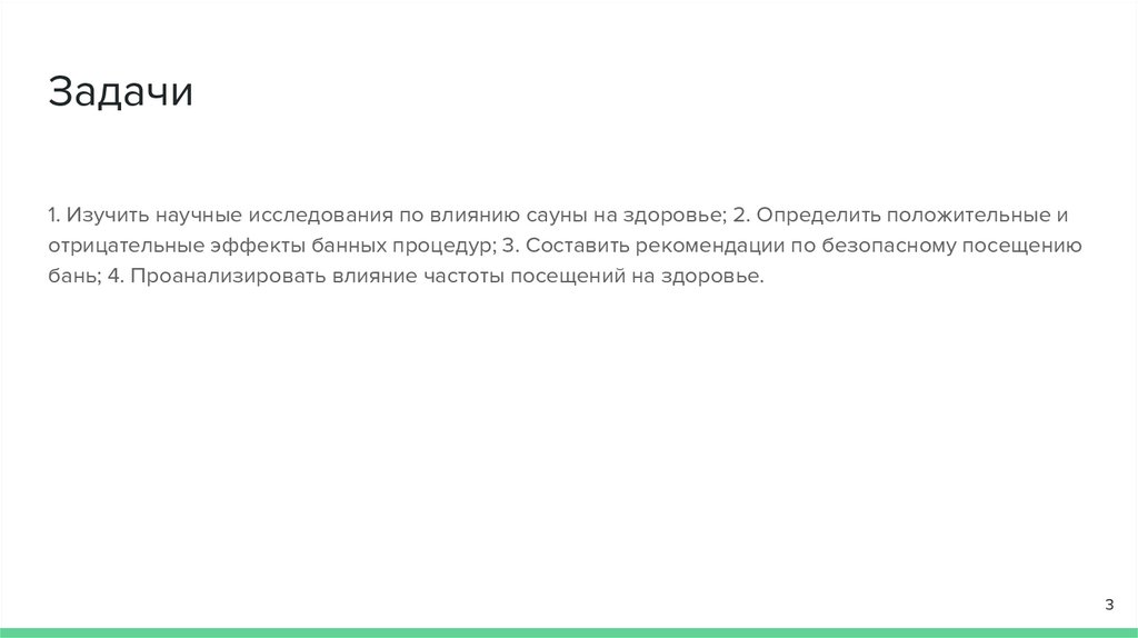 Задачи1. Изучить научные исследования по влиянию сауны на здоровье; 2. Определить положительные и