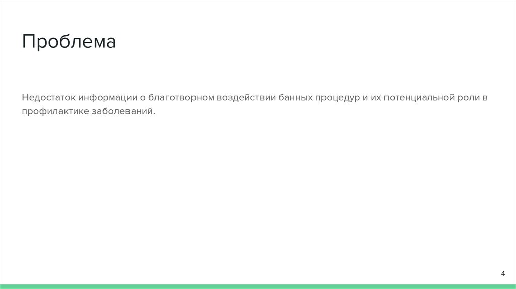 ПроблемаНедостаток информации о благотворном воздействии банных процедур и их потенциальной роли в