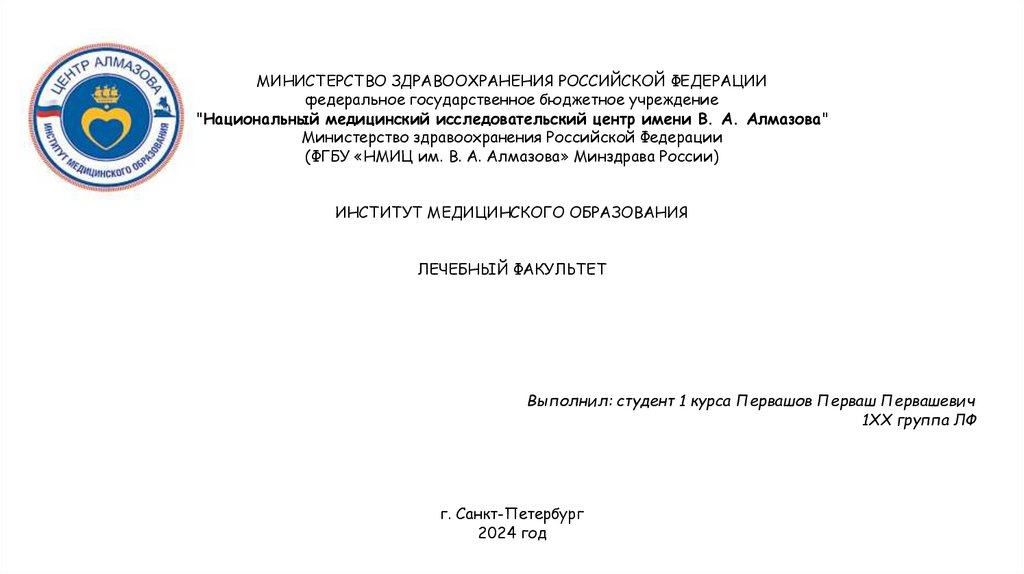 (ФГБУ «НМИЦ им. В. А. Алмазова» Минздрава России)