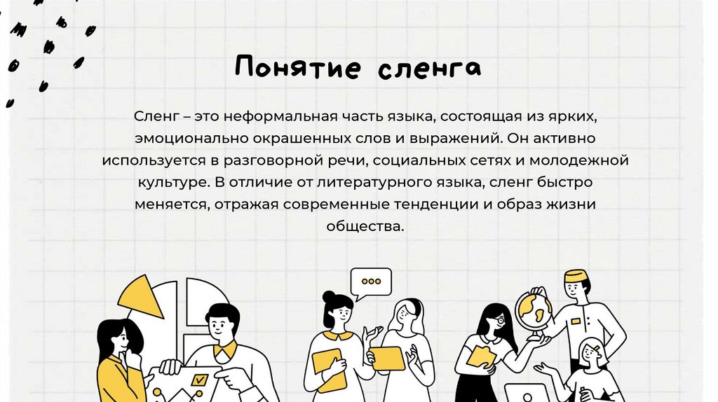 Понятие сленгаСленг – это неформальная часть языка, состоящая из ярких,