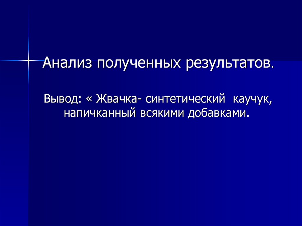Анализ полученных результатов.Вывод: « Жвачка- синтетический каучук,