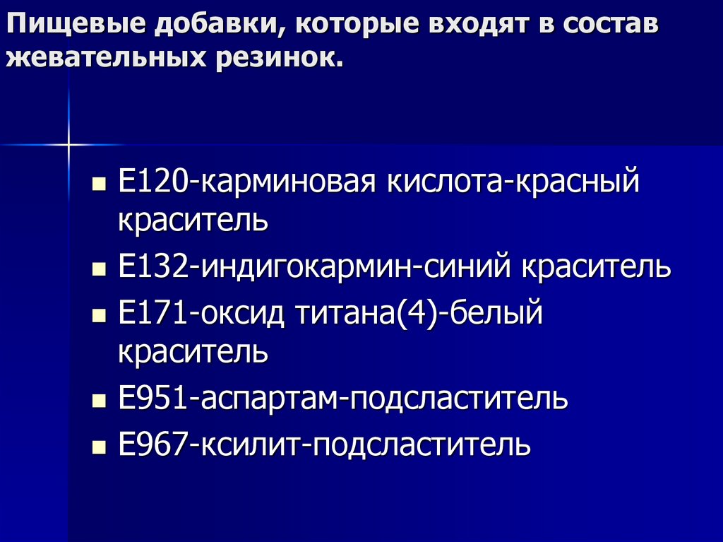 7. Пищевые добавки, которые входят в состав жевательных резинок.