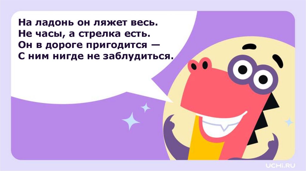 На ладонь он ляжет весь.Не часы, а стрелка есть.