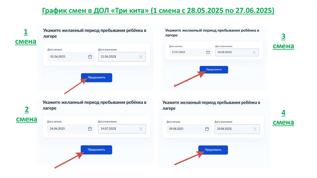 График смен в ДОЛ «Три кита» (1 смена с 28.05.2025 по 27.06.2025)1