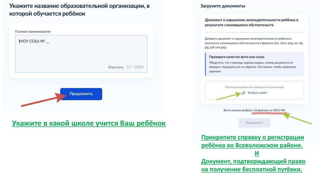 Перед отправкой заявления УБЕДИТЕСЬ, что Вы подгрузили необходимые документы:1. Справку, подтверждающую регистрацию ребёнка во Всеволожском районе;