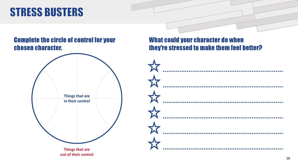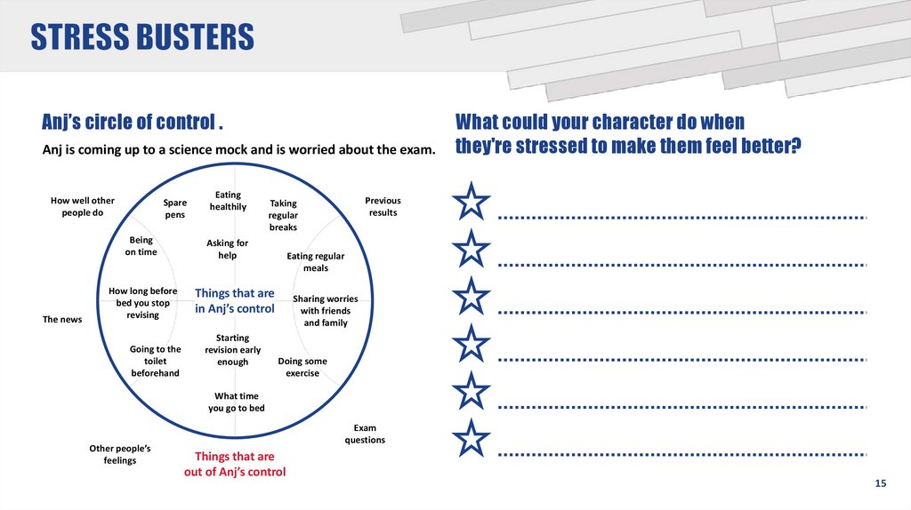 Anj’s circle of control .Anj is coming up to a science mock and is worried about the exam.