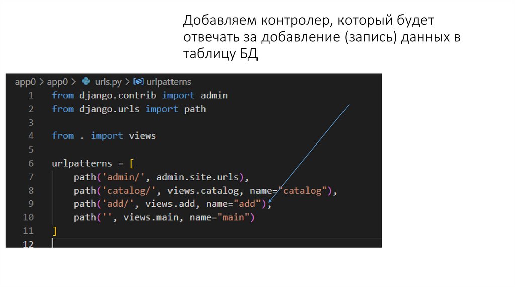 2. Добавляем контролер, который будет отвечать за добавление (запись) данных в таблицу БД