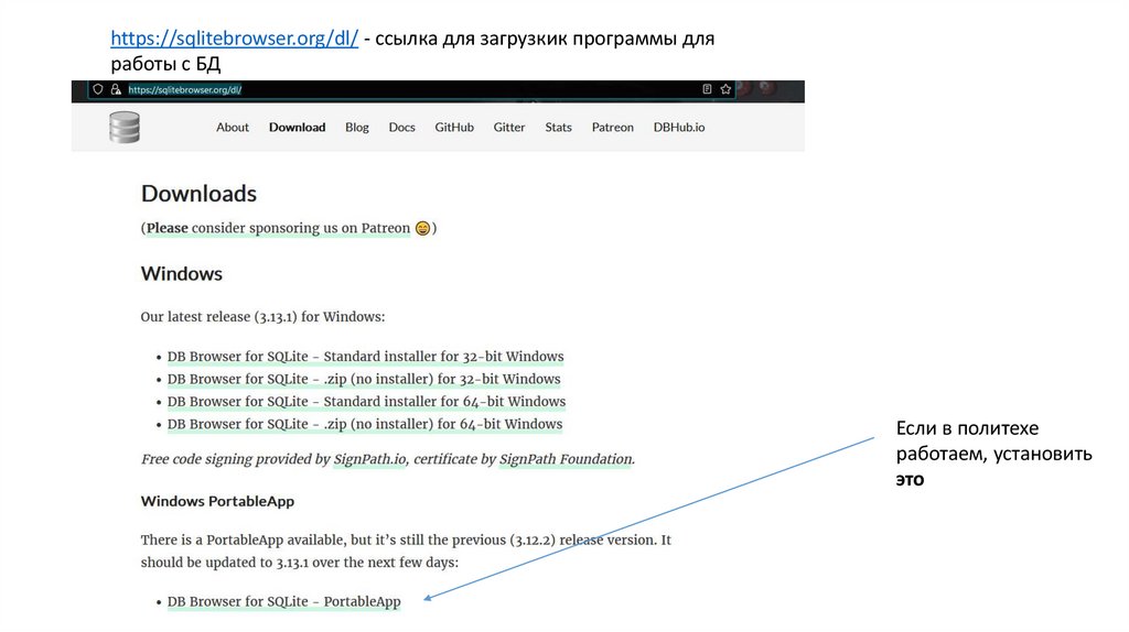 https://sqlitebrowser.org/dl/ - ccылка для загрузкик программы дляработы с БД