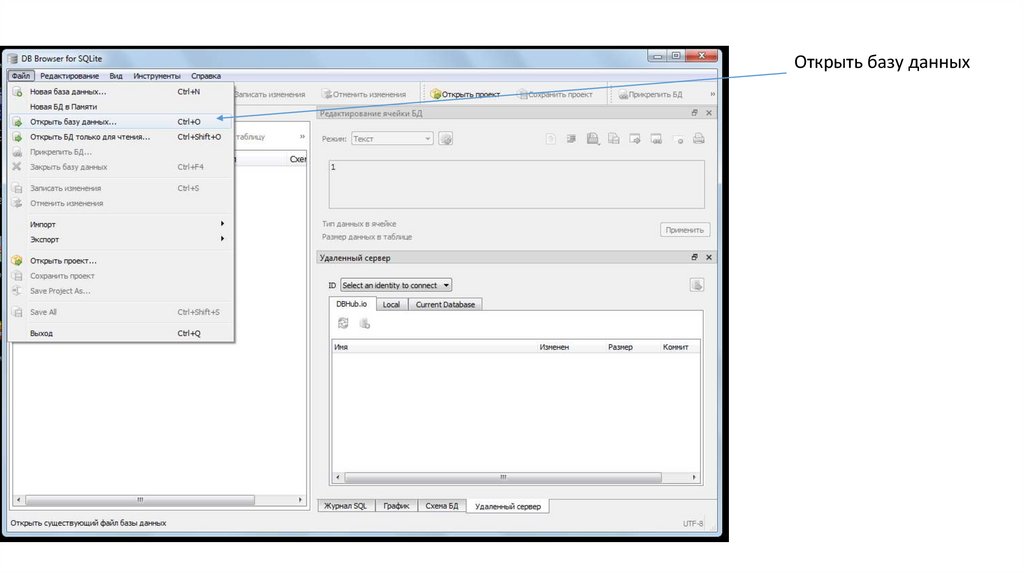 Открыть базу данных14.
