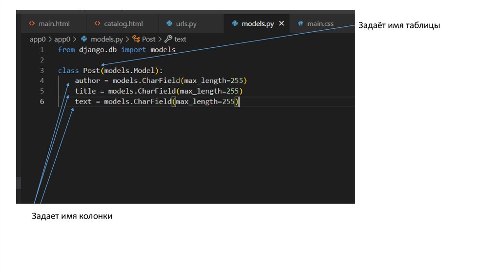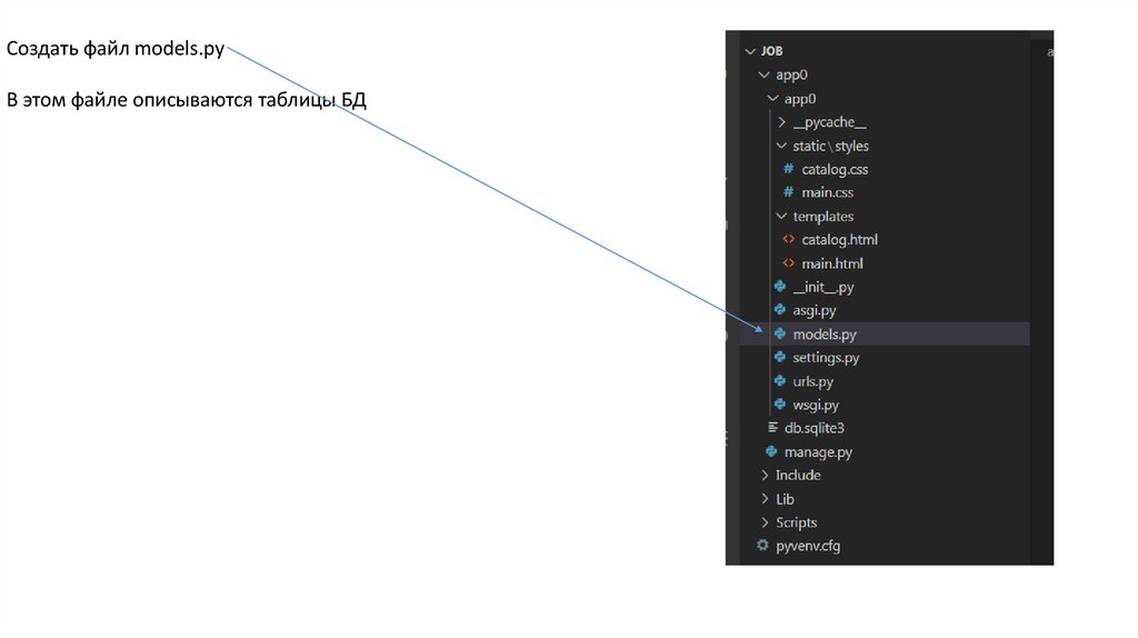 Создать файл models.pyВ этом файле описываются таблицы БД
