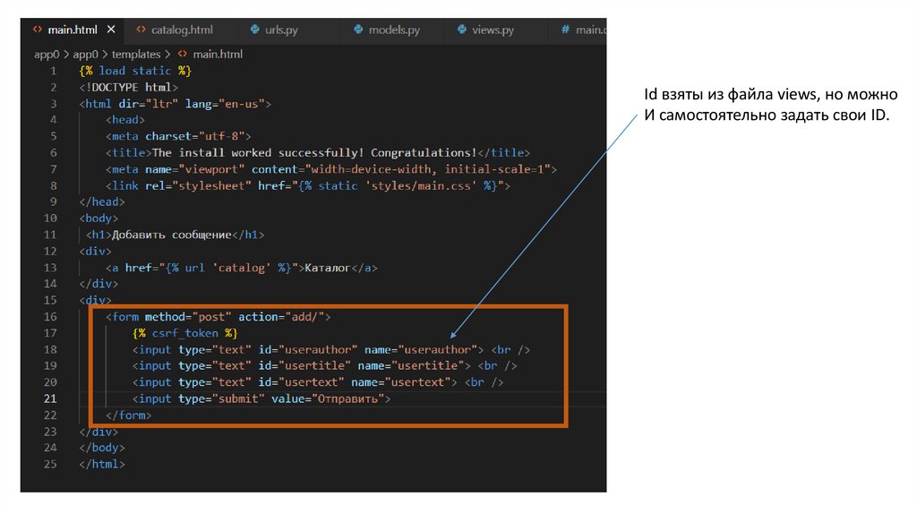 Id взяты из файла views, но можноИ самостоятельно задать свои ID.