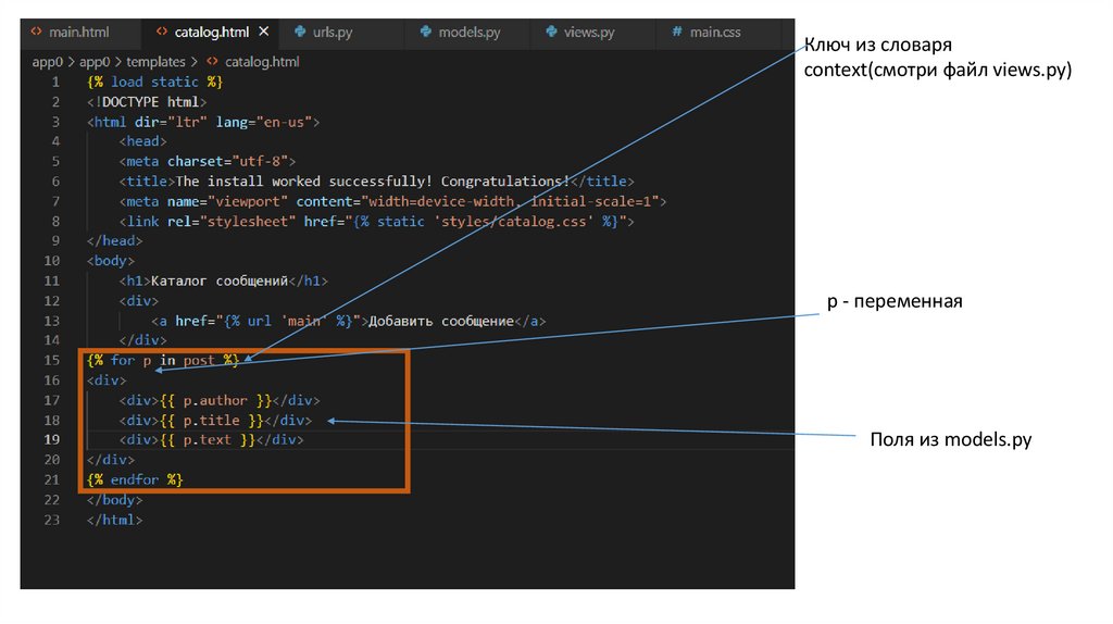 Ключ из словаряcontext(смотри файл views.py)