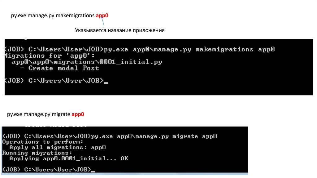 py.exe manage.py makemigrations app0Указывается название приложения