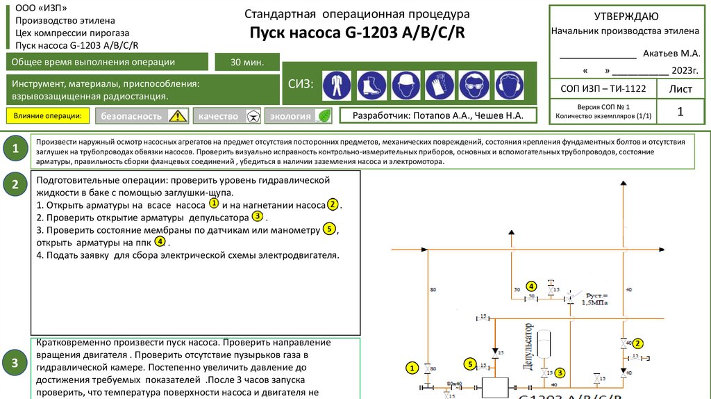 ООО «ИЗП» Производство этилена Цех компрессии пирогаза Пуск насоса G-1201 A\R