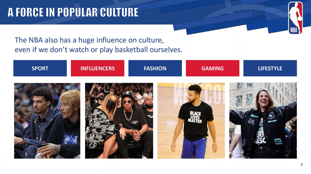 The NBA also has a huge influence on culture,even if we don’t watch or play basketball ourselves.