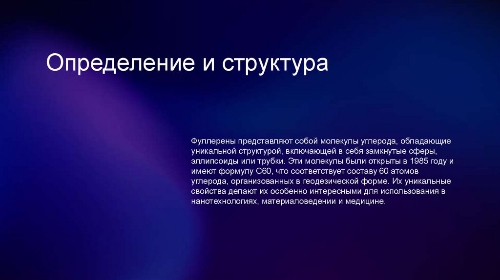Определение и структураФуллерены представляют собой молекулы углерода, обладающие
