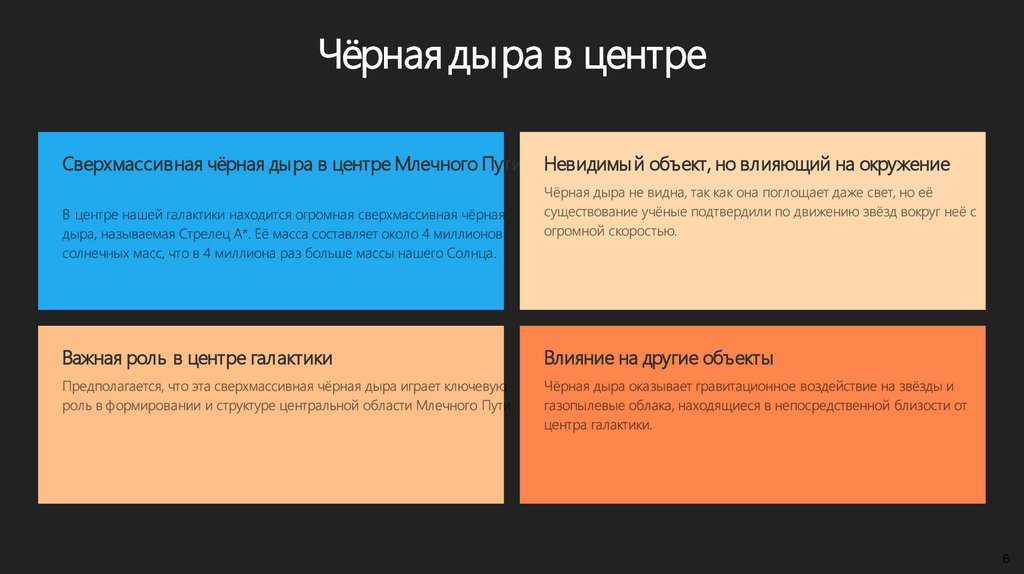 Чёрная дыра в центреСверхмассивная чёрная дыра в центре Млечного Пути
