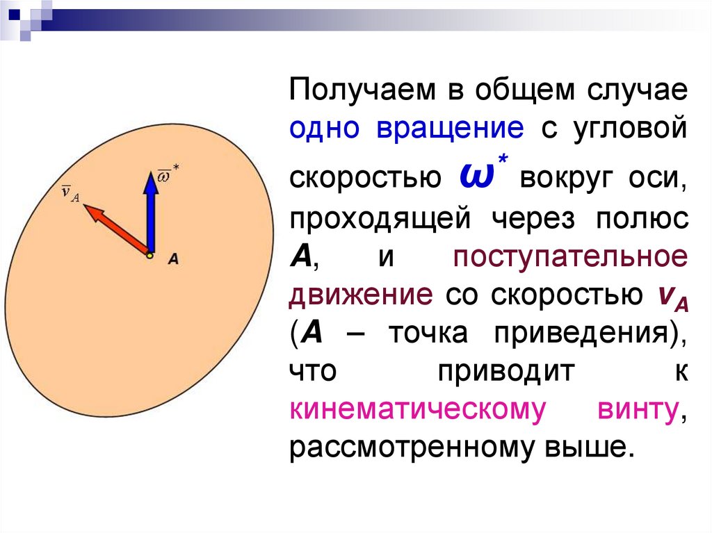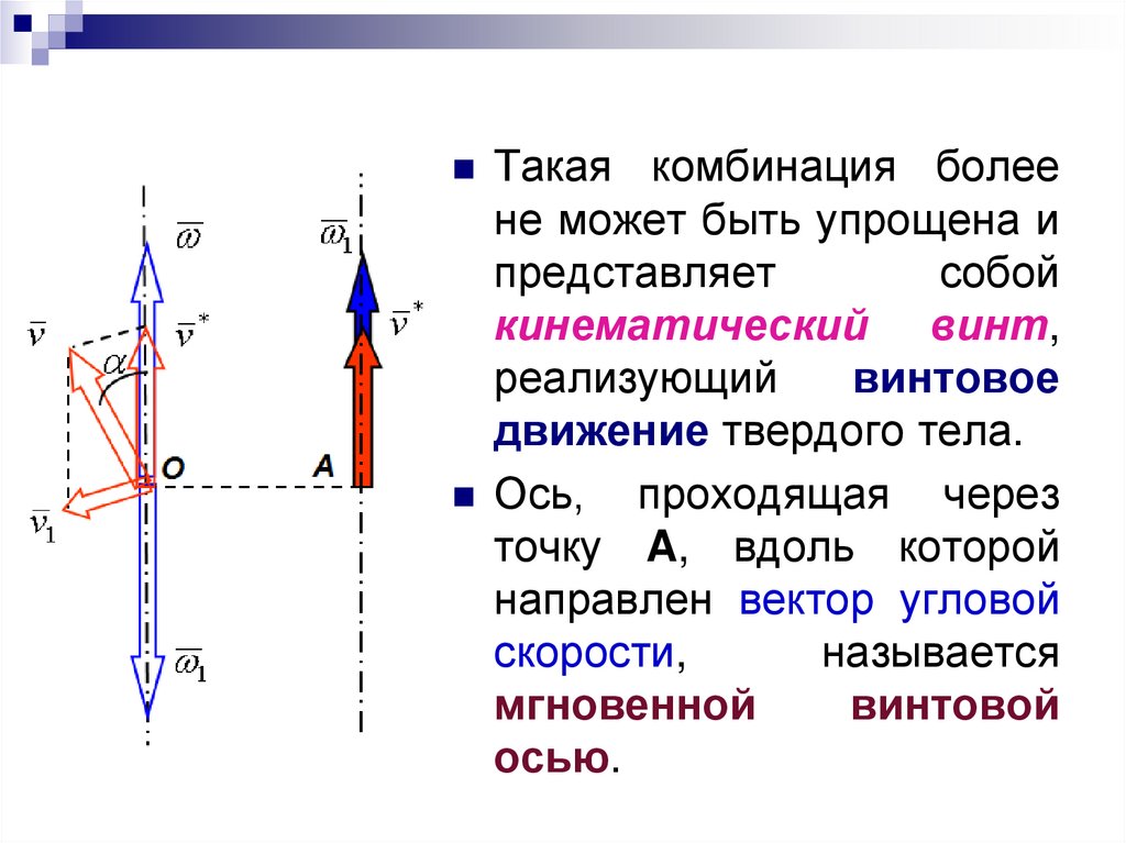 Для мгновенно-винтового движения теламожно найти мгновенную винтовую ось,