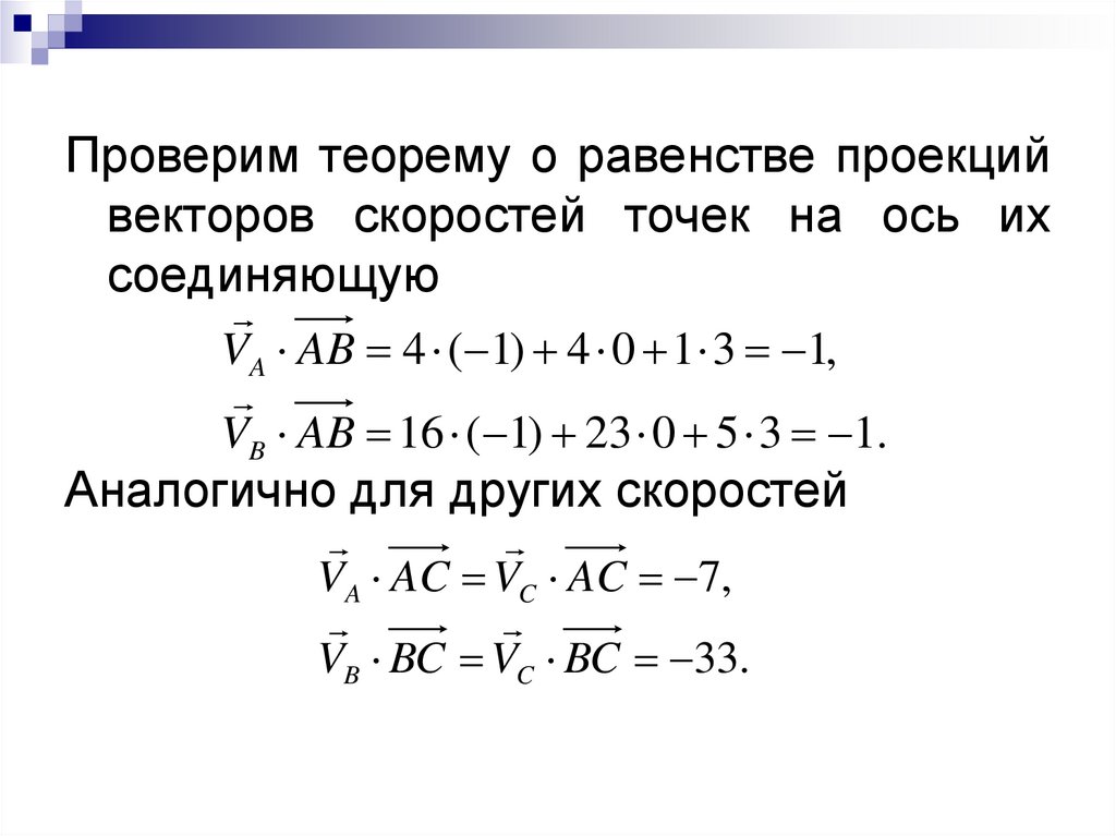 Проверим теорему о равенстве проекцийвекторов скоростей точек на ось их