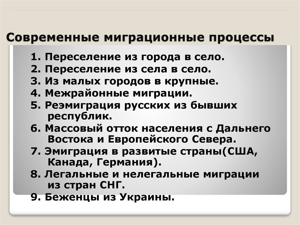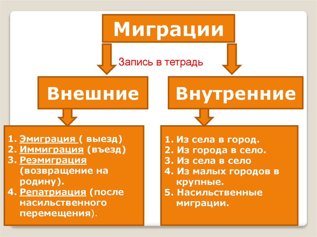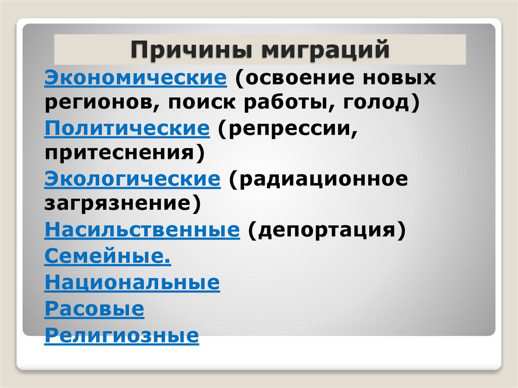 Экономические (освоение новыхрегионов, поиск работы, голод)