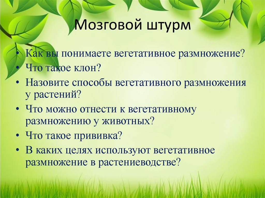 • Как вы понимаете вегетативное размножение?• Что такое клон?