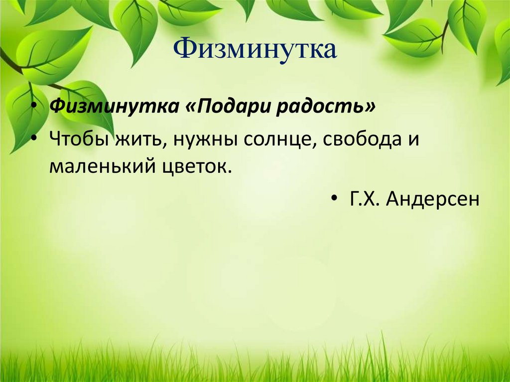 • Физминутка «Подари радость»• Чтобы жить, нужны солнце, свобода и