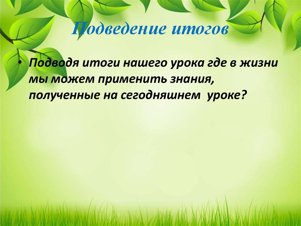 • Подводя итоги нашего урока где в жизнимы можем применить знания,