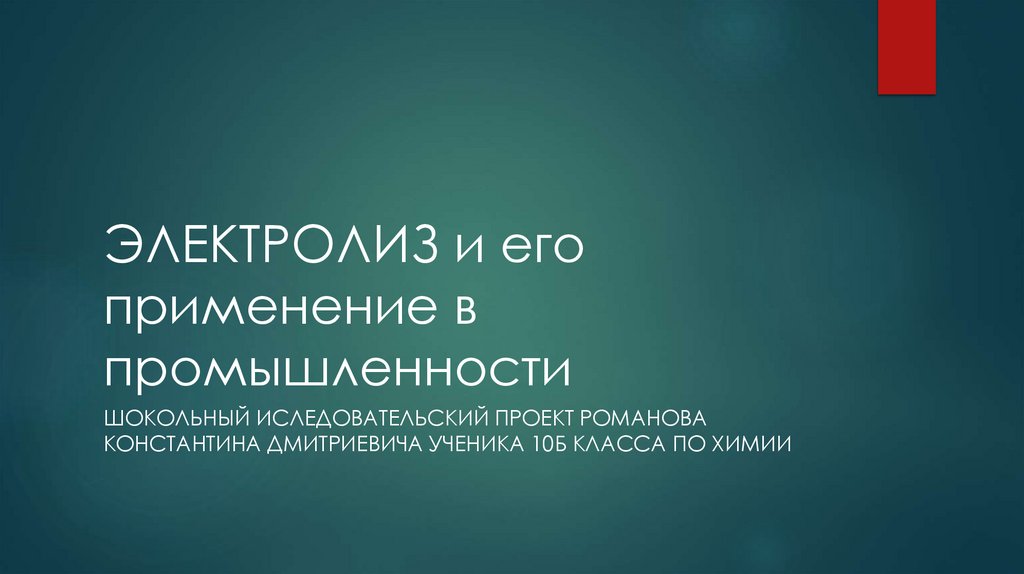 1. ЭЛЕКТРОЛИЗ и его применение в промышленности