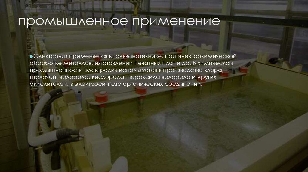 промышленное применениеЭлектролиз применяется в гальванотехнике, при электрохимической