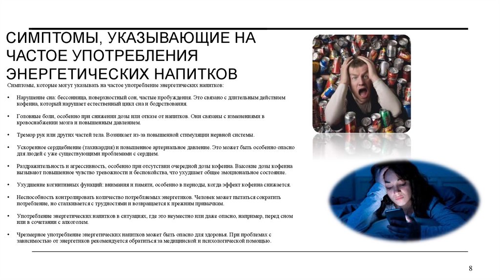 8. Симптомы, указывающие на частое употребления энергетических напитков
