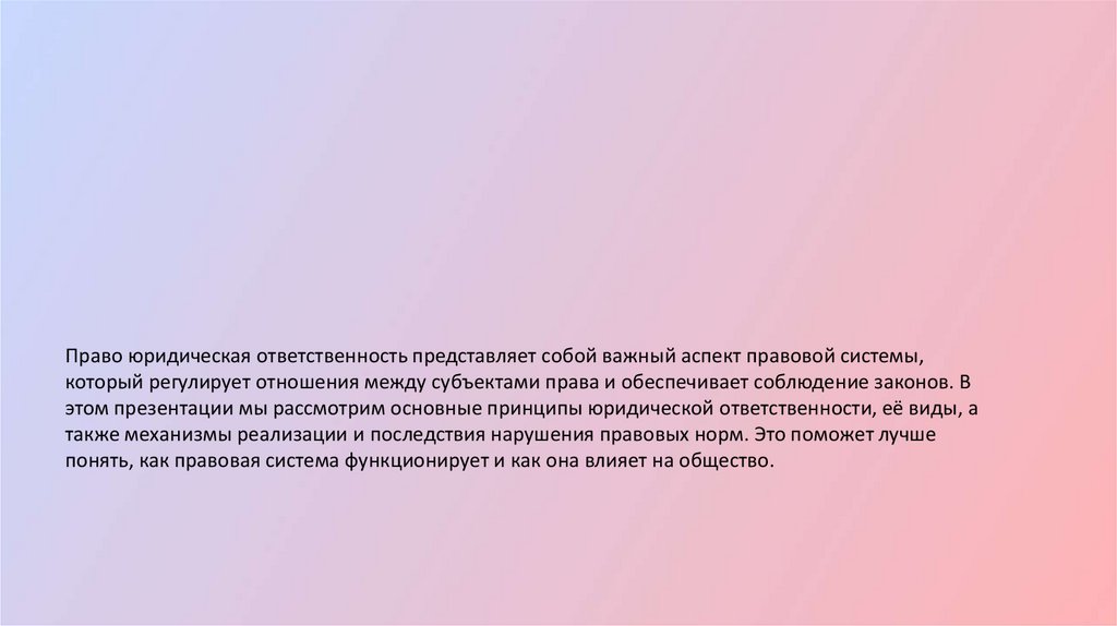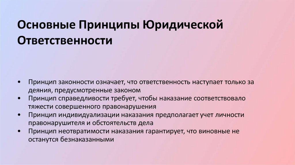 этом презентации мы рассмотрим основные принципы юридической ответственности, её виды, а