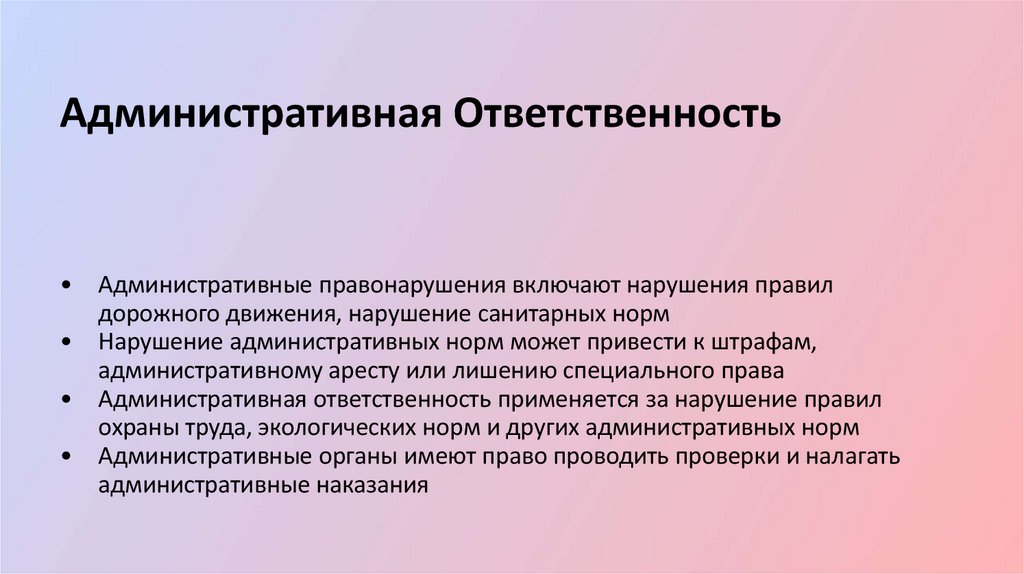Административная ОтветственностьАдминистративные правонарушения включают нарушения правил