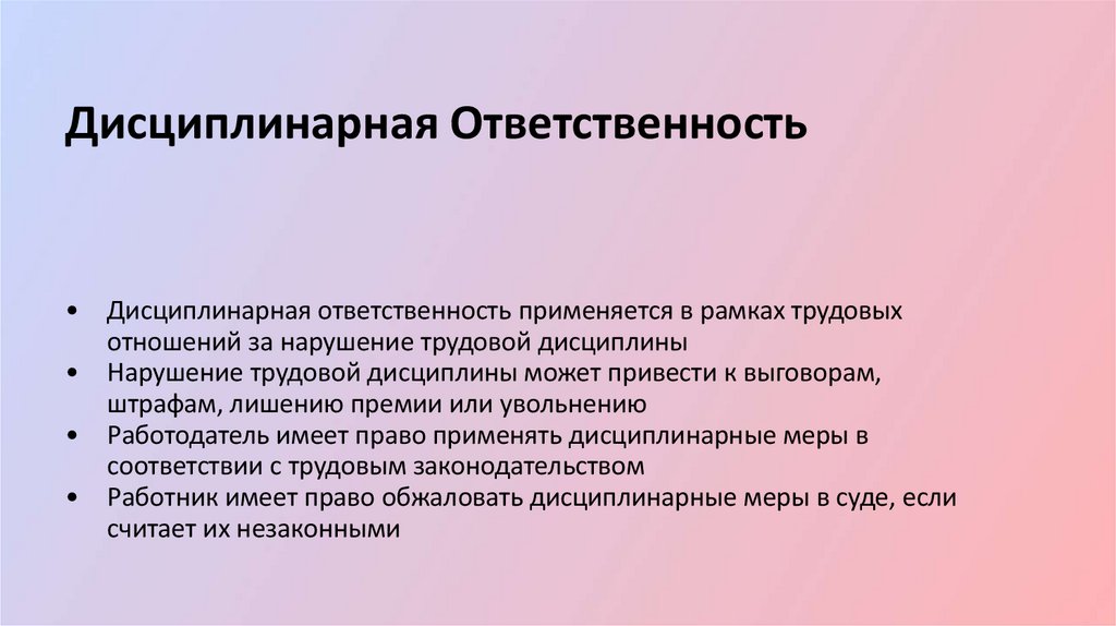 Дисциплинарная ОтветственностьДисциплинарная ответственность применяется в рамках трудовых