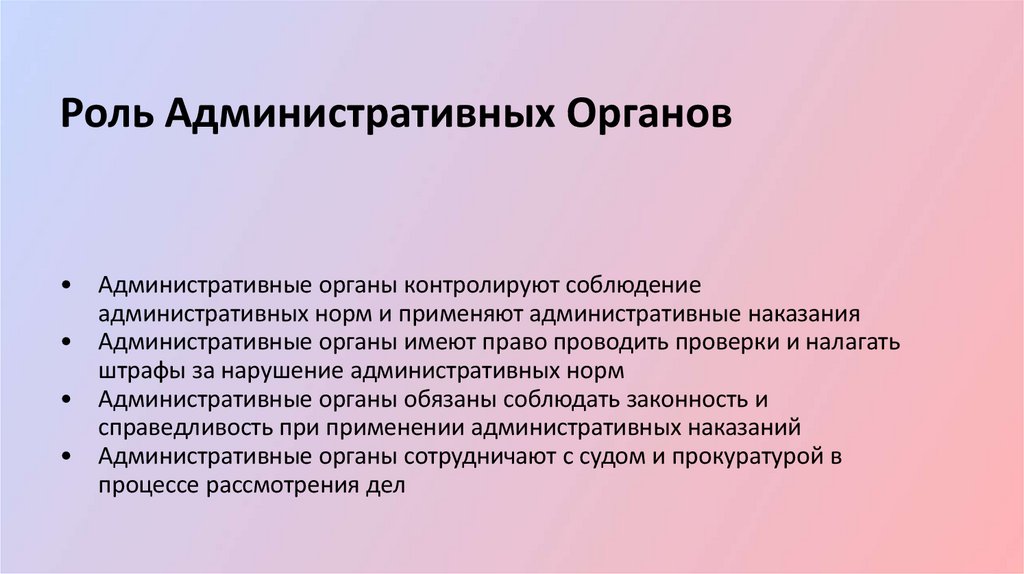 Роль Административных ОргановАдминистративные органы контролируют соблюдение