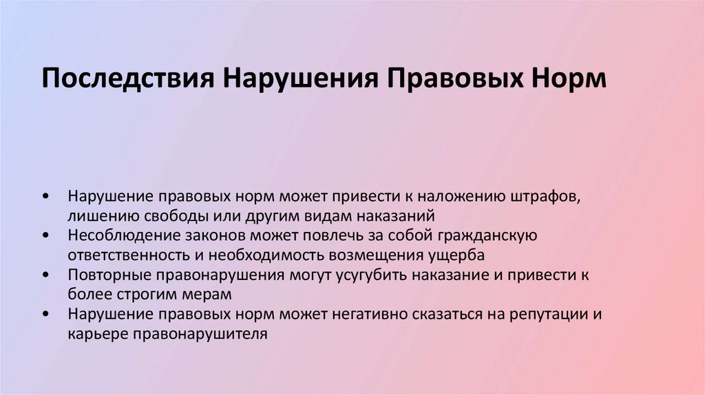 Последствия Нарушения Правовых НормНарушение правовых норм может привести к наложению штрафов,