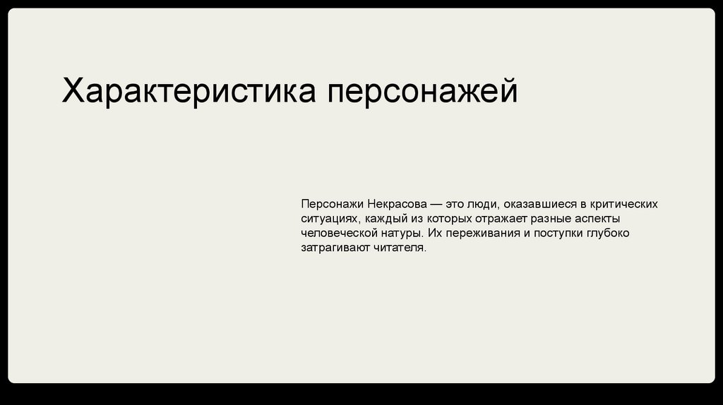 Характеристика персонажейПерсонажи Некрасова — это люди, оказавшиеся в критических