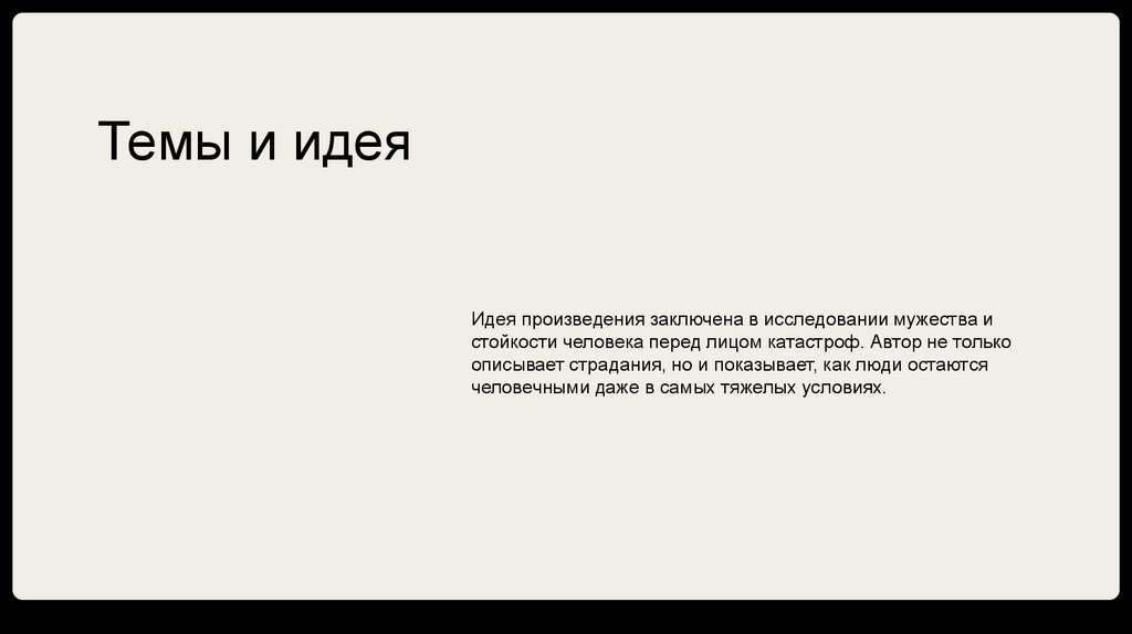 Темы и идеяИдея произведения заключена в исследовании мужества и