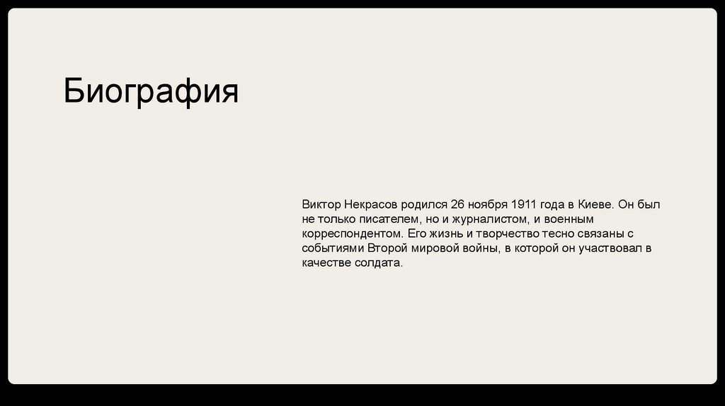 БиографияВиктор Некрасов родился 26 ноября 1911 года в Киеве. Он был